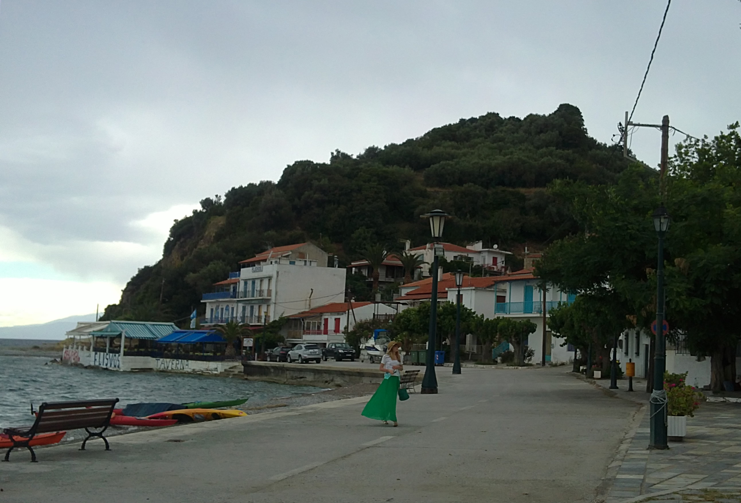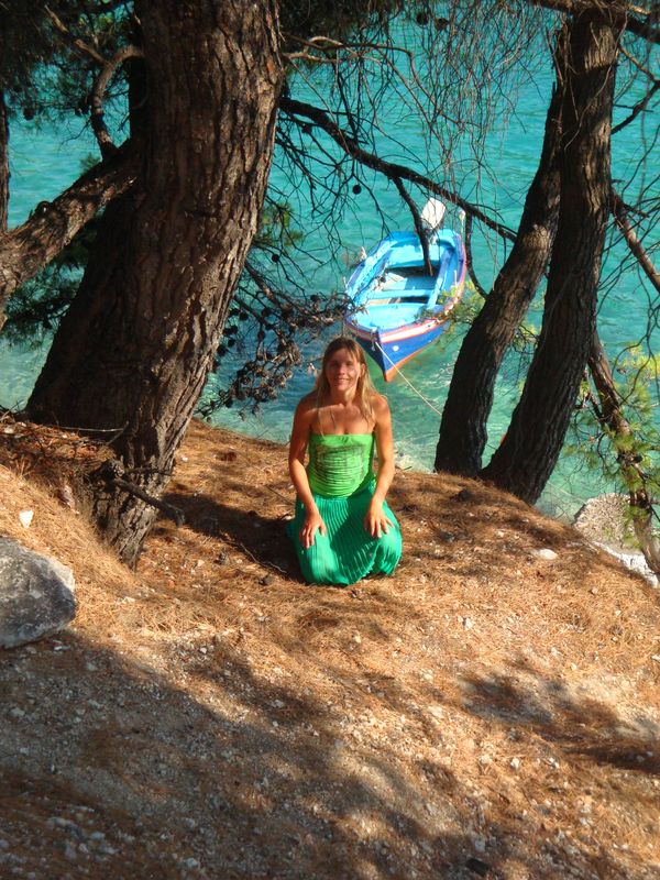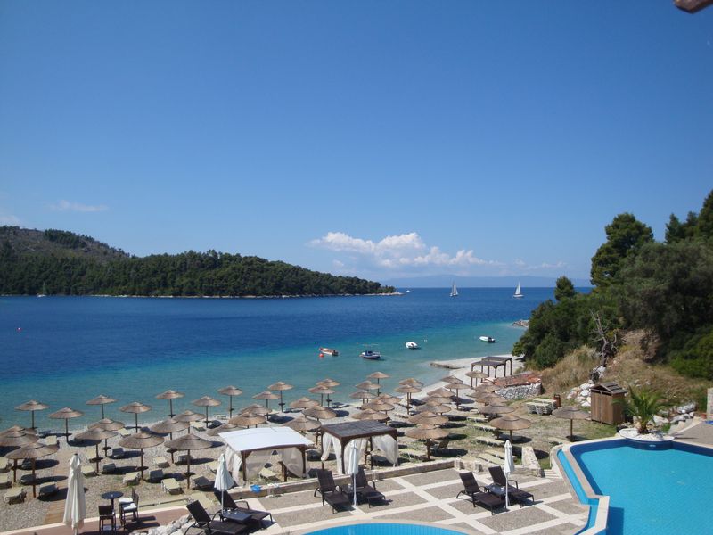 Темной ночью приветливый грек встретил нас в порту. Моя мама еще надеялась на большой корабль, но была лишь моторная лодка, обтянутая тентом. Помню, меня поразило, что грек был босой, и, когда ночью под звездами мы мчались по синему морю, ветер развевал тент, а брызги воды летели нам в лицо. Это было маленькое, но волнующее приключение! Я не боялась, так как время поездки выбирала сама и верила, что мы благополучно доберемся, лишь детей старалась держать крепче. Далее все было еще загадочнее, нас погрузили в черный джип, который вез нас в отель через темный, таинственный лес – неужели такие леса есть в Греции? Шел конец мая, и мы оказались первыми в отеле. Нас гостеприимно встречала управляющая отелем Анастасия. У нас был лучший номер с тремя балконами, самый красивый пляж и просто замечательная поездка!