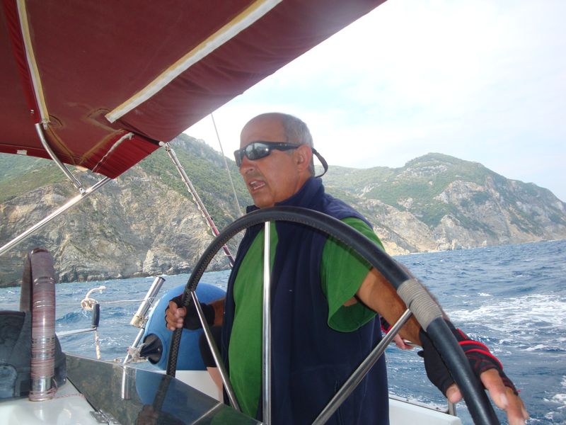 Мы плавали искать дельфинов с капитаном Васúлисом на яхте, это был наш первый опыт и первый шторм в 5 баллов. Яхту бросало из стороны в сторону, и нам приходилось упираться ногами выступы на палубе и судорожно хвататься руками за поручни (некоторые сразу выбыли из строя с морской болезнью). Все по очереди порулили в штормовых условиях и прошли «боевое крещение», но диплом получил только средний сын за отвагу и способности к мореходству. Васúлис – бывалый капитан, ловкий и проворный, как краб, успевал всё.