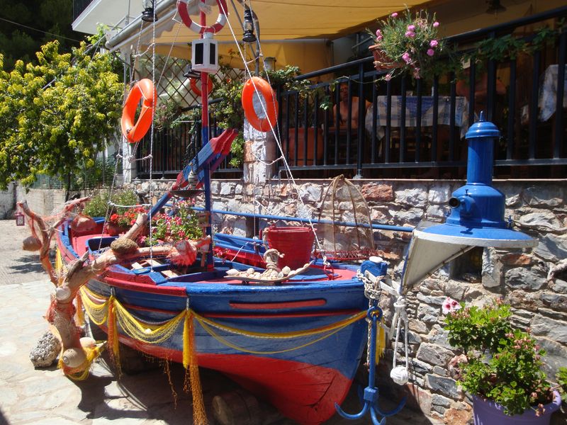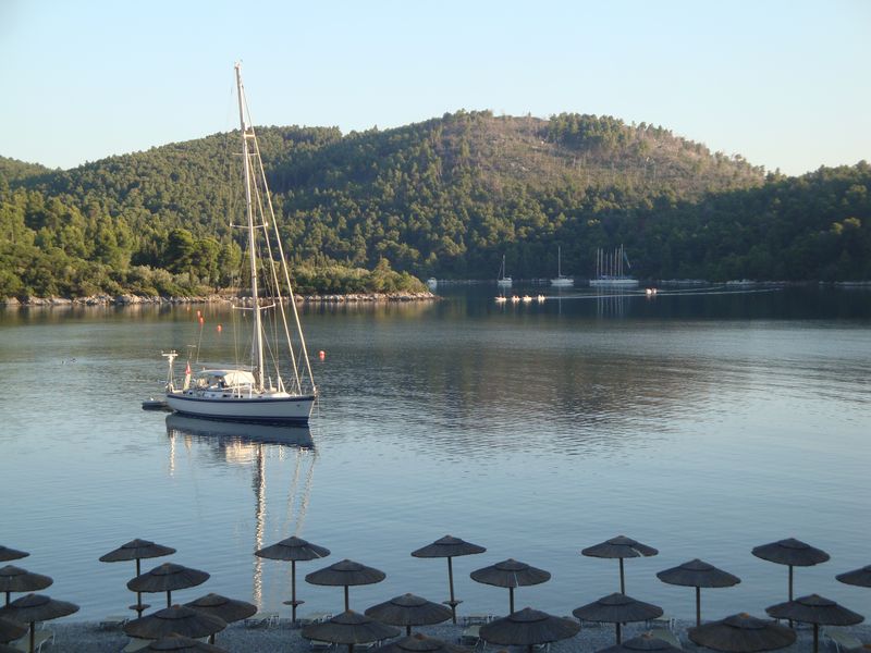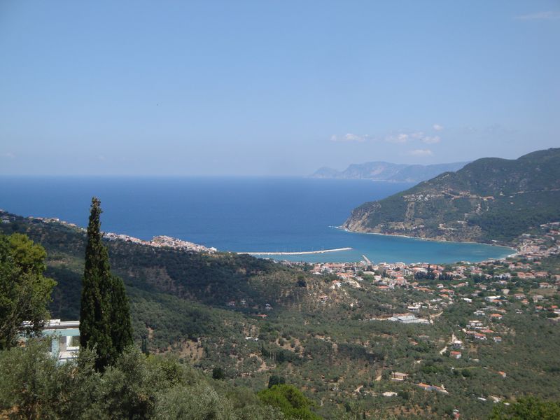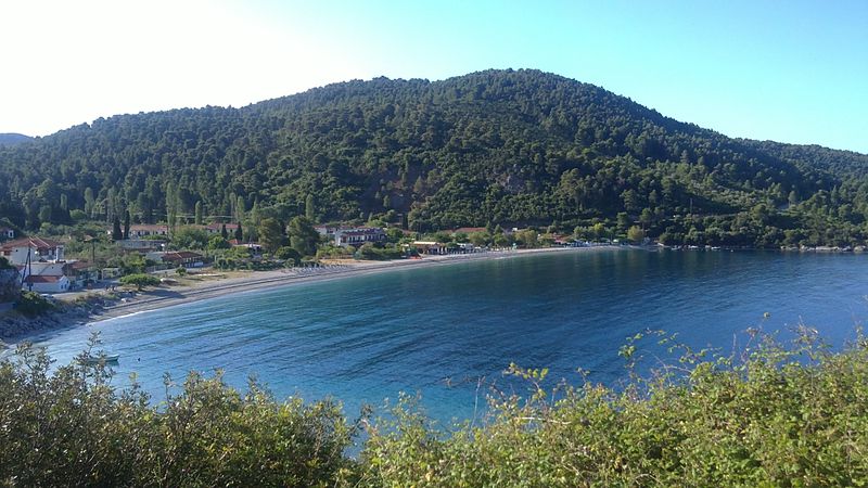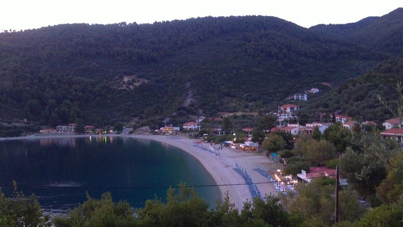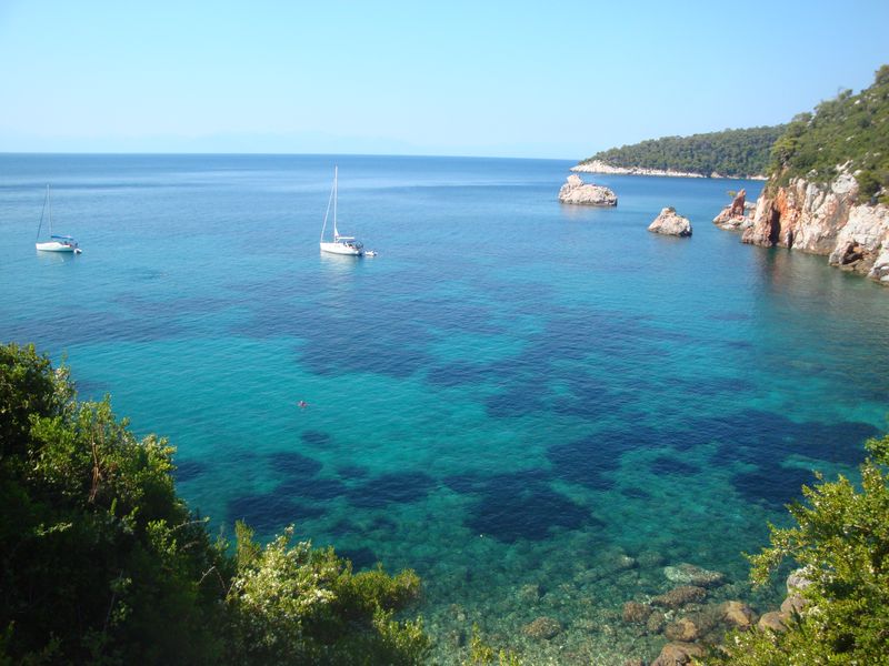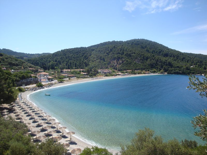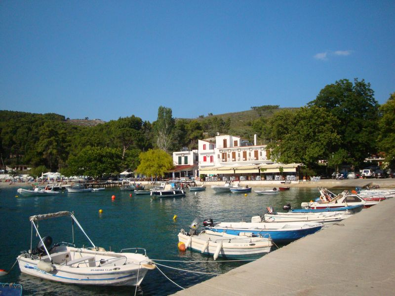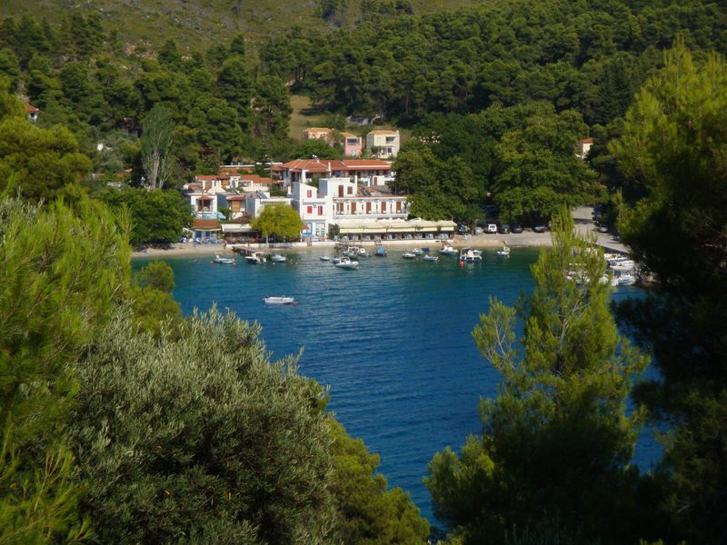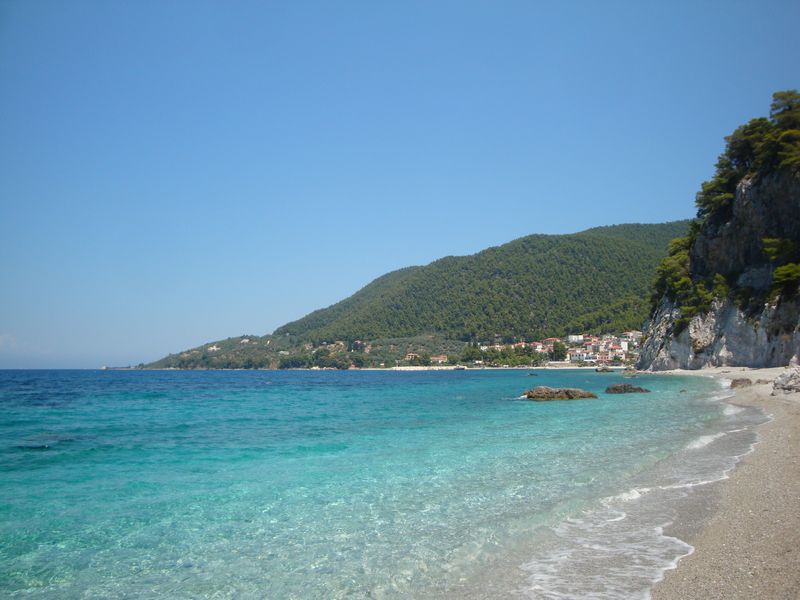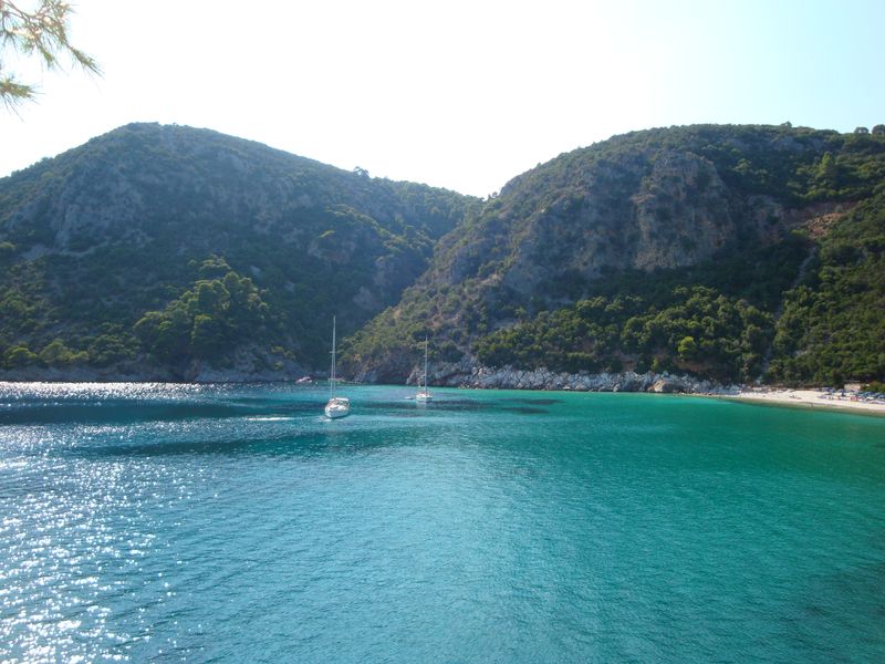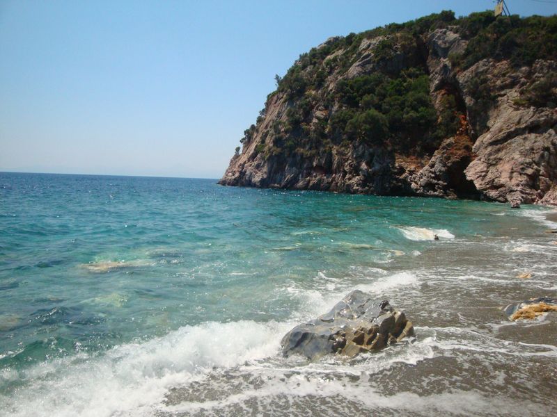До сих пор при воспоминании о том, как плавала в этой бухте, меня охватывает чувство несказанной радости! Сверху находятся отельчики, а таверны расположены прямо на скалах, с которых у самой воды спускают в кругах плавать детей – не надо никакого пляжа – романтика. Неподалеку существует захоронение полководца Стафила (Στάφυλος), сына бога Диониса, скипетр которого из чистого золота сейчас находится в музее Волоса. Приятный сюрприз преподнес грек, подаривший красивейшую магнолию, которая позже распустилась в воде и долго радовала нас волшебным ароматом.