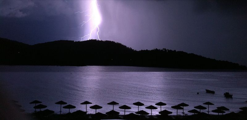 Мама черпала бодрость духа, бегая вдоль побережья по утрам. Мы исследовали все известные пляжи острова – удобно, что практически везде к ним можно добраться на местном автобусе. Сюрприз ожидал нас в середине июня, когда 3 дня была гроза, и молния, озаряя темное небо яркой вспышкой, била совсем рядом, а мы сидели на гальке на берегу и наслаждались этим притягательным и грозным зрелищем.