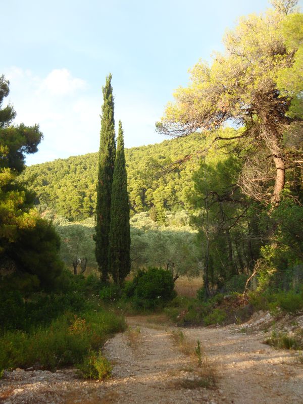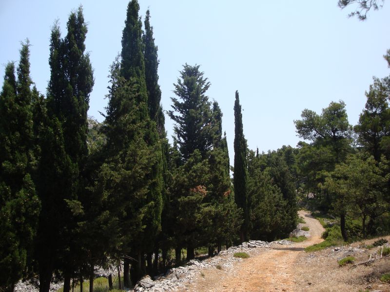 Мы в окружении тенистой зелени бодро поднялись на гору Дельфи и нашли там хорошо сохранившийся древний тракт, обсаженный кипарисами. До смотровой башни на самой вершине мы так и не дошли метров 50 из-за детей и обрывистого пути, даже бывалый папа так и не решился ;)