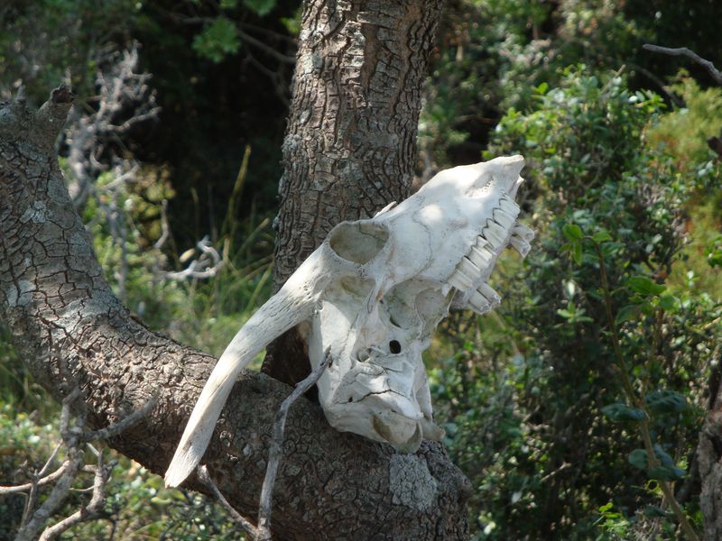 Кстати, немного истории. Для главного похода на гору Дельфи (Δέλφη) и к гробницам Сендукья мы ждали папу-геолога. На горе Дельфи находятся древние гробницы возрастом 4000 лет, и до сих пор неизвестно, кто был захоронен в них. В начале пути вас встречает вот такой симпатичный козий череп;)