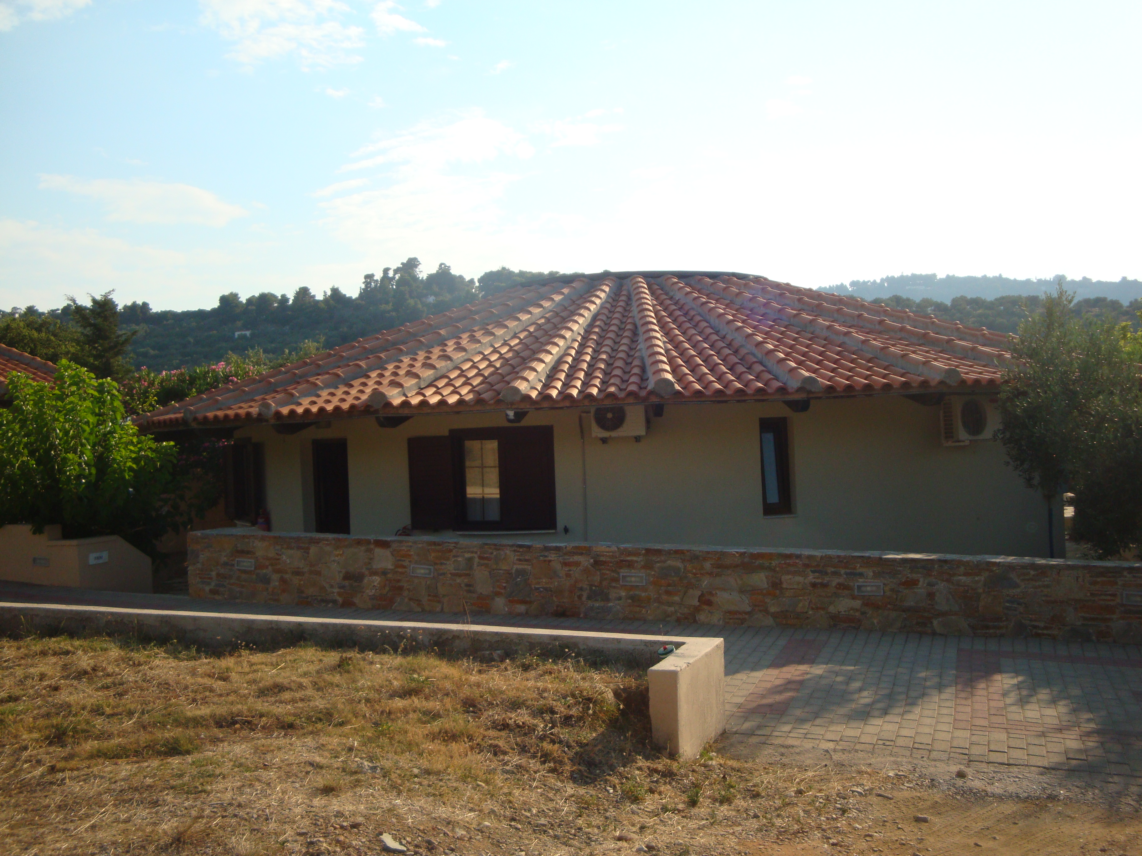 Эти 3 дня было прохладно, особенно с утра... ощущение, по температуре, как в Петербурге в области, только воздух напоен греческими ароматами и днем выходит греческое солнце. И мы, привыкшие к жаркой Греции и ранее с негодованием отвергшие советы бабушки взять свитера, одевали несколько футболок под джинсовые куртки, выходя на завтрак или к ужину в ресторане. В июне было в среднем +25-26°C.